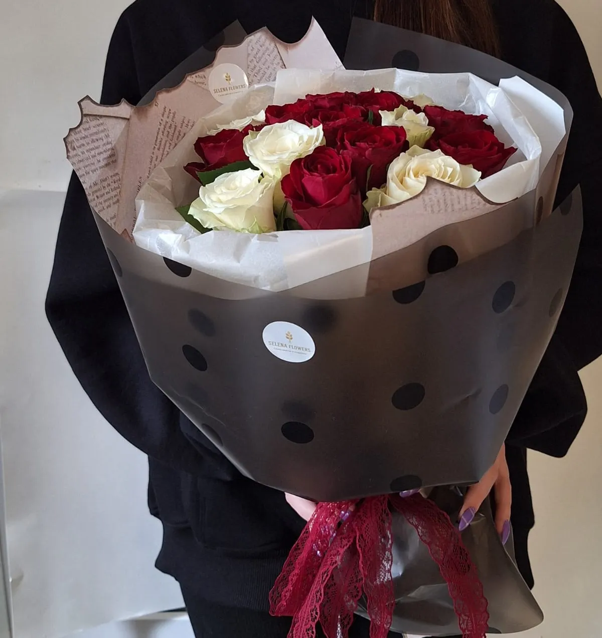 Роскошный букет из стойких роз 40 см. Универсальный подарок на любой повод. Розы обладают легких ароматом и бутоном среднего размера.