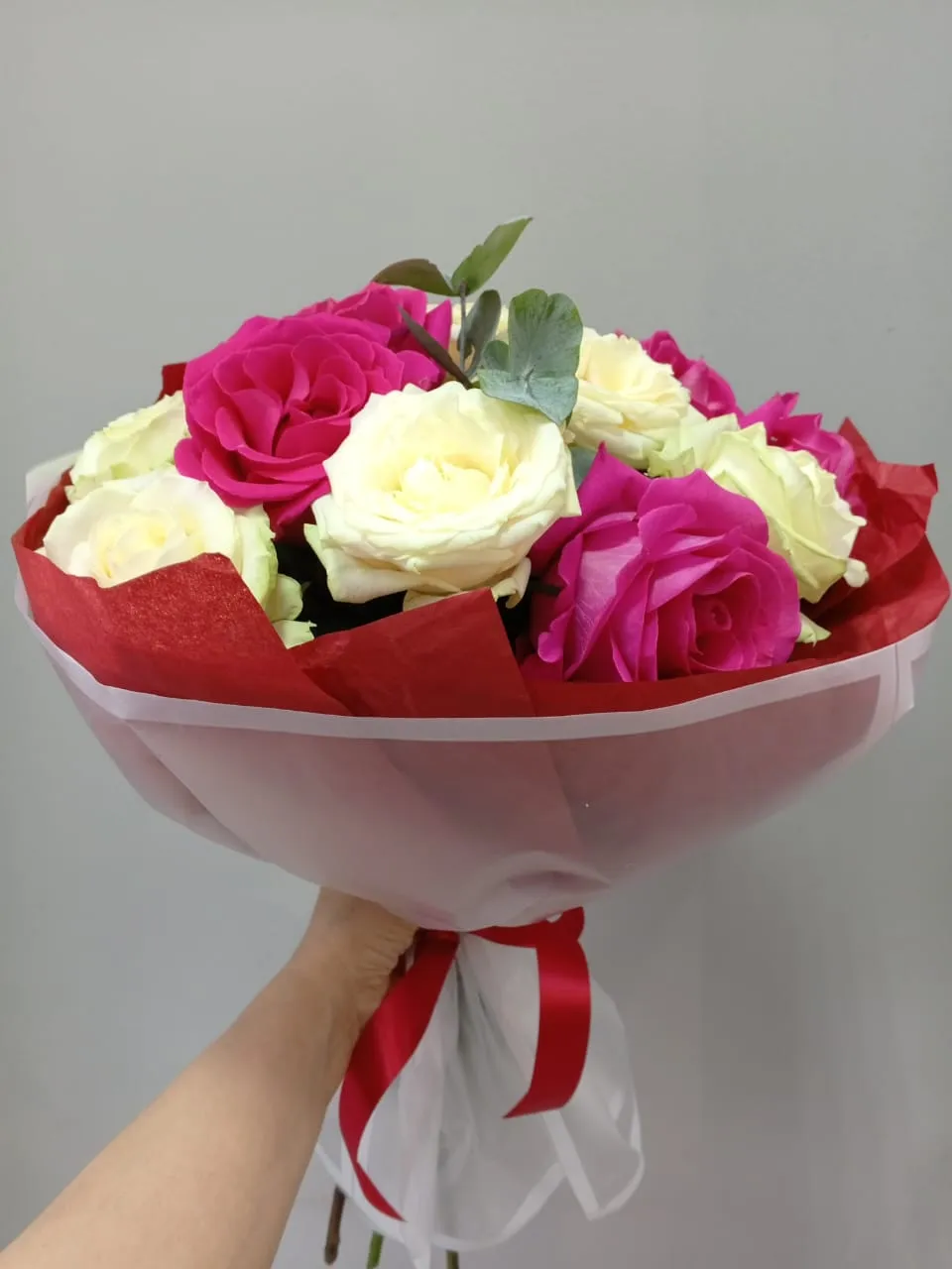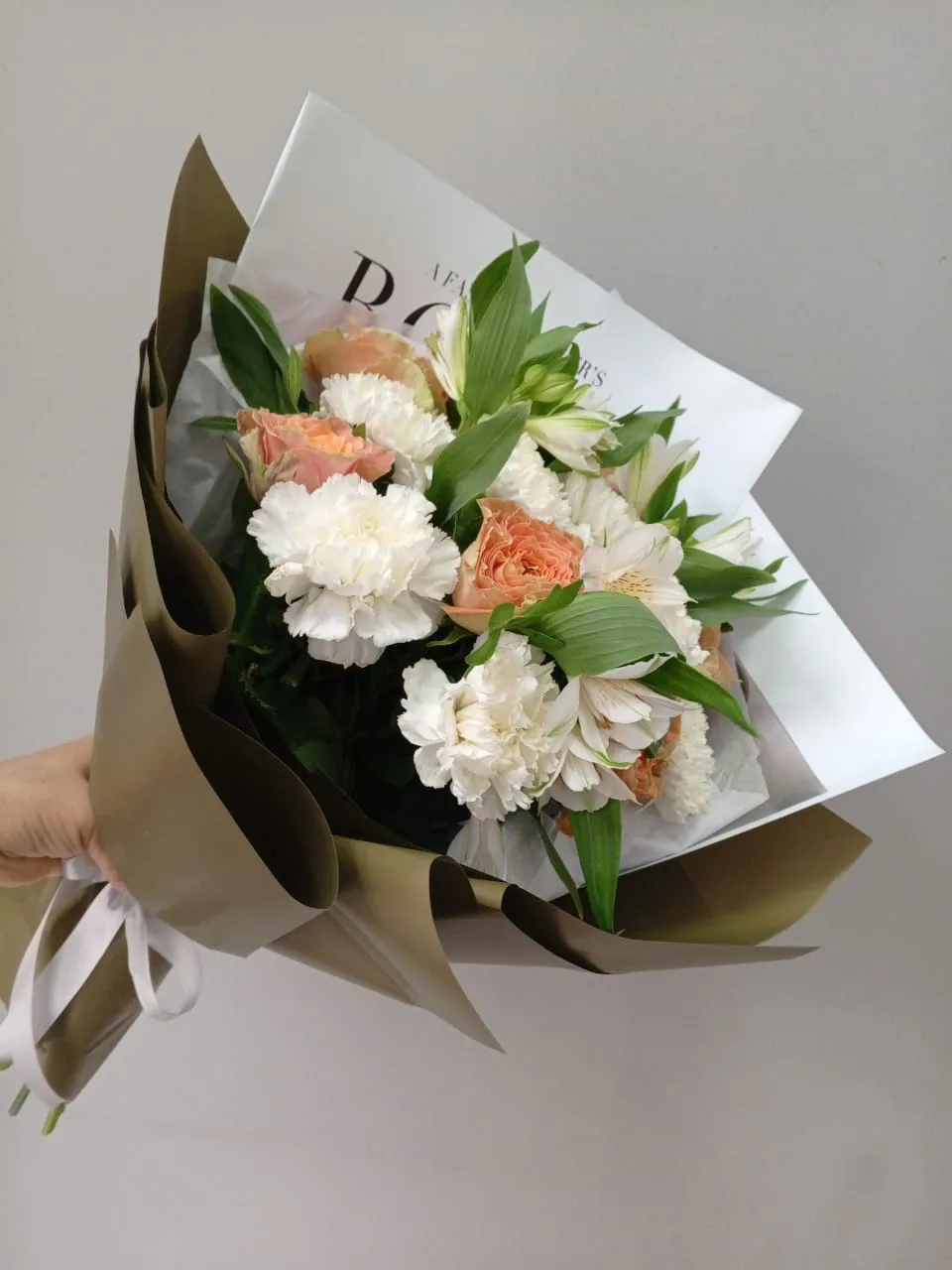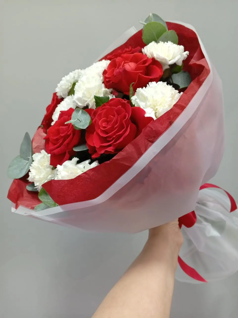 Букет с розами и гвоздиками