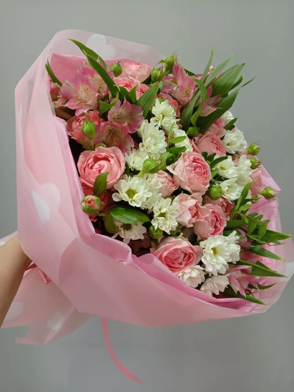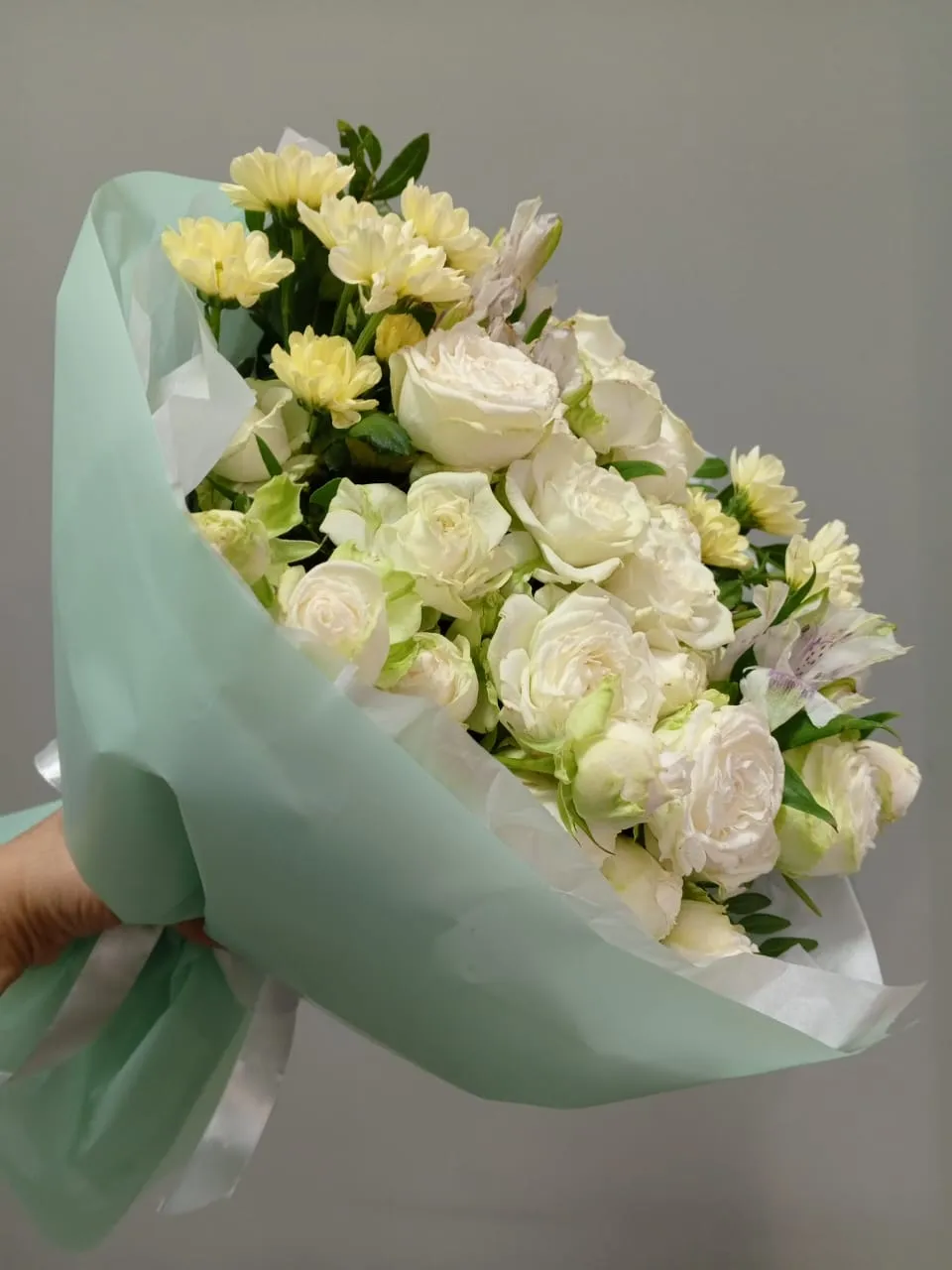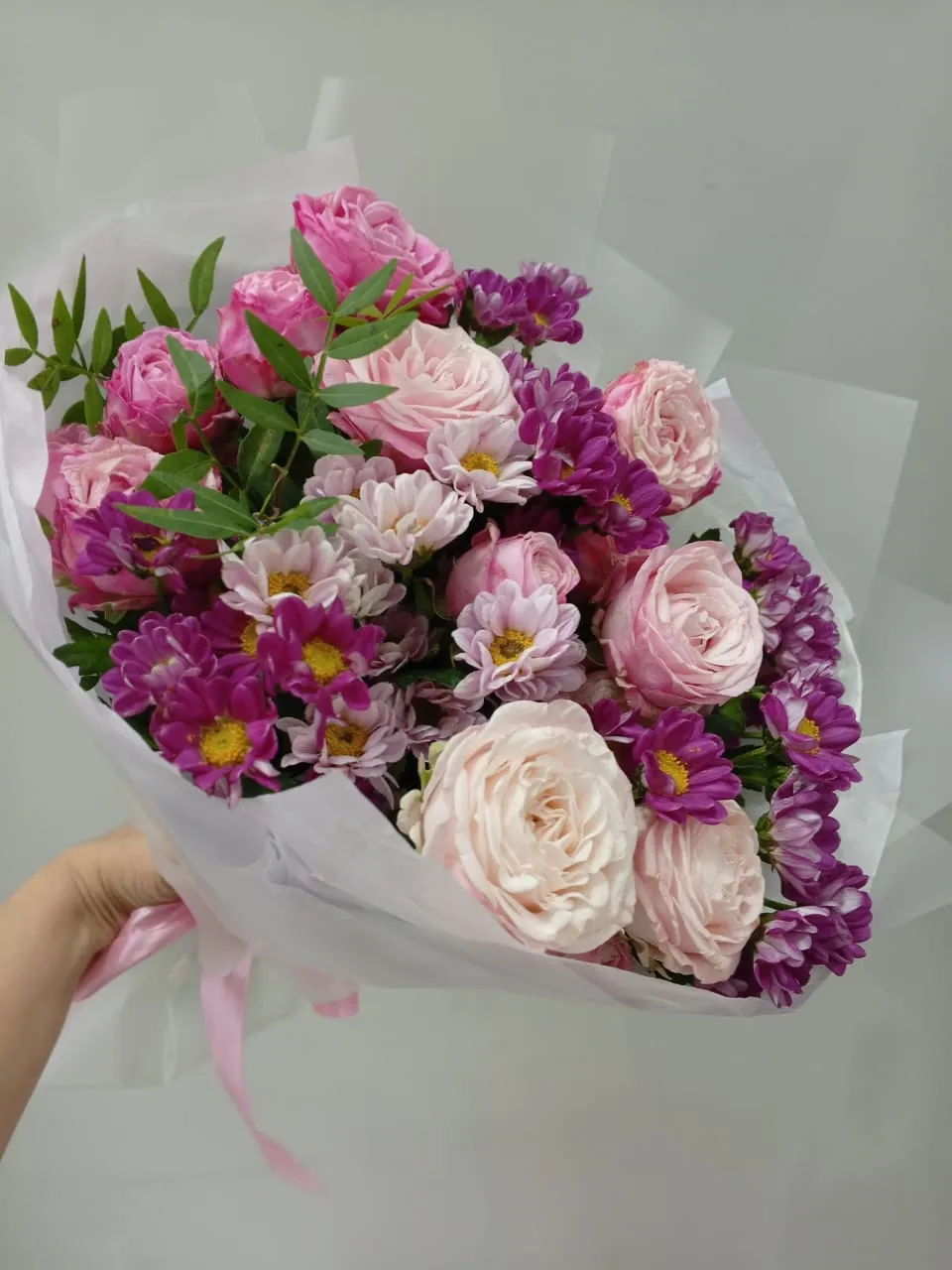 Букет из хризантем и кустовых роз