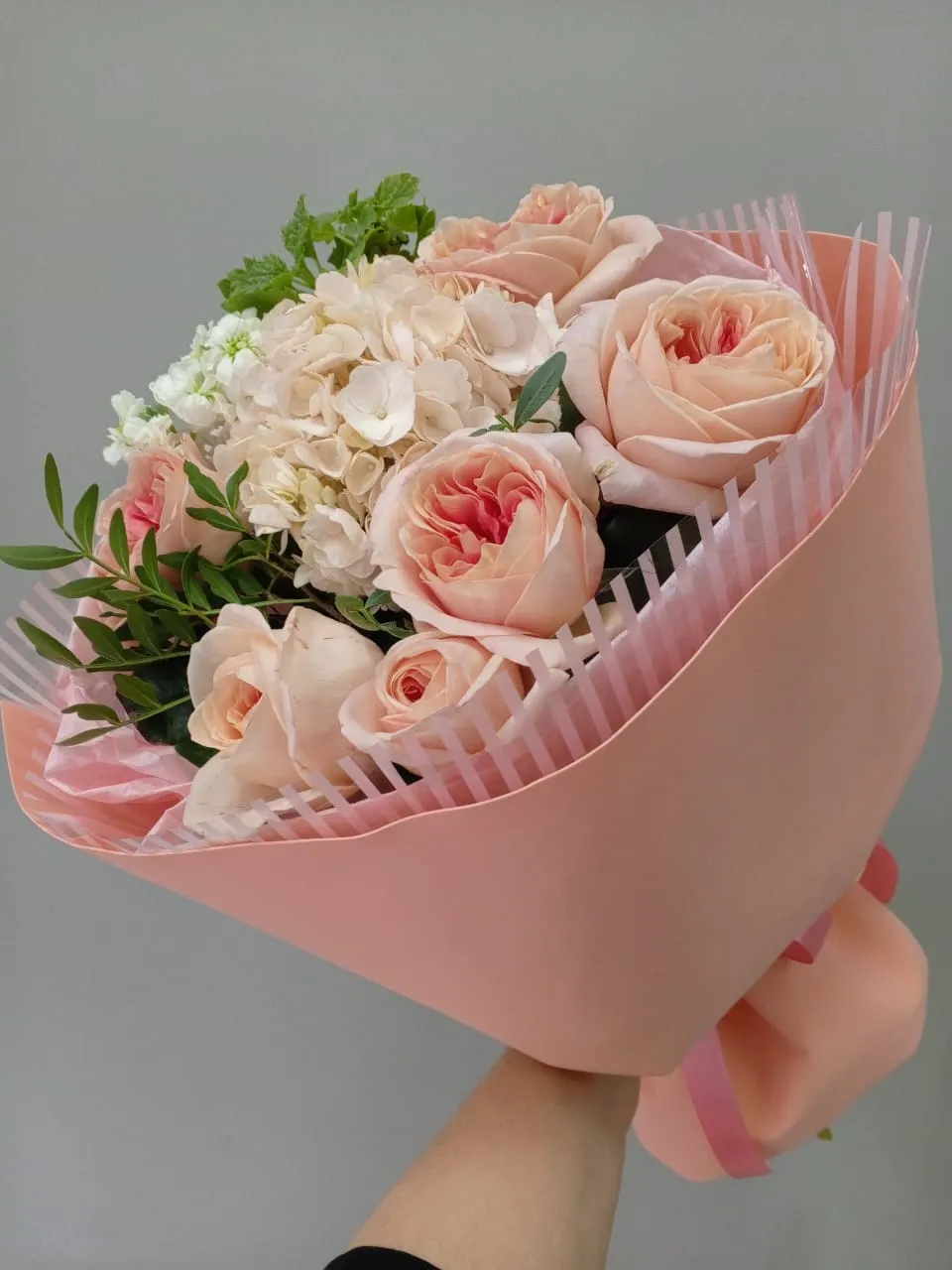 Букет из персиковый гортензии и роз Лондон Ай