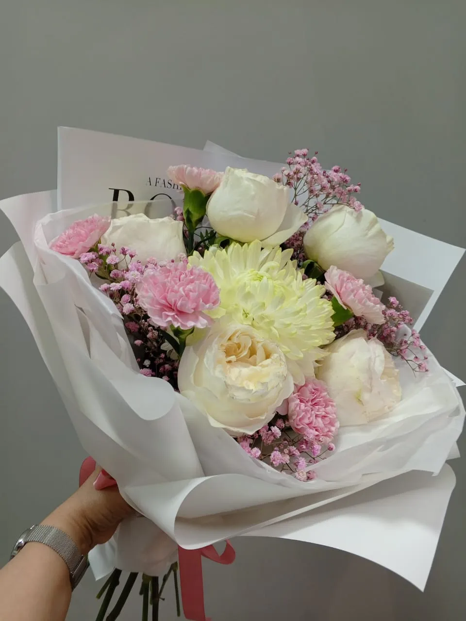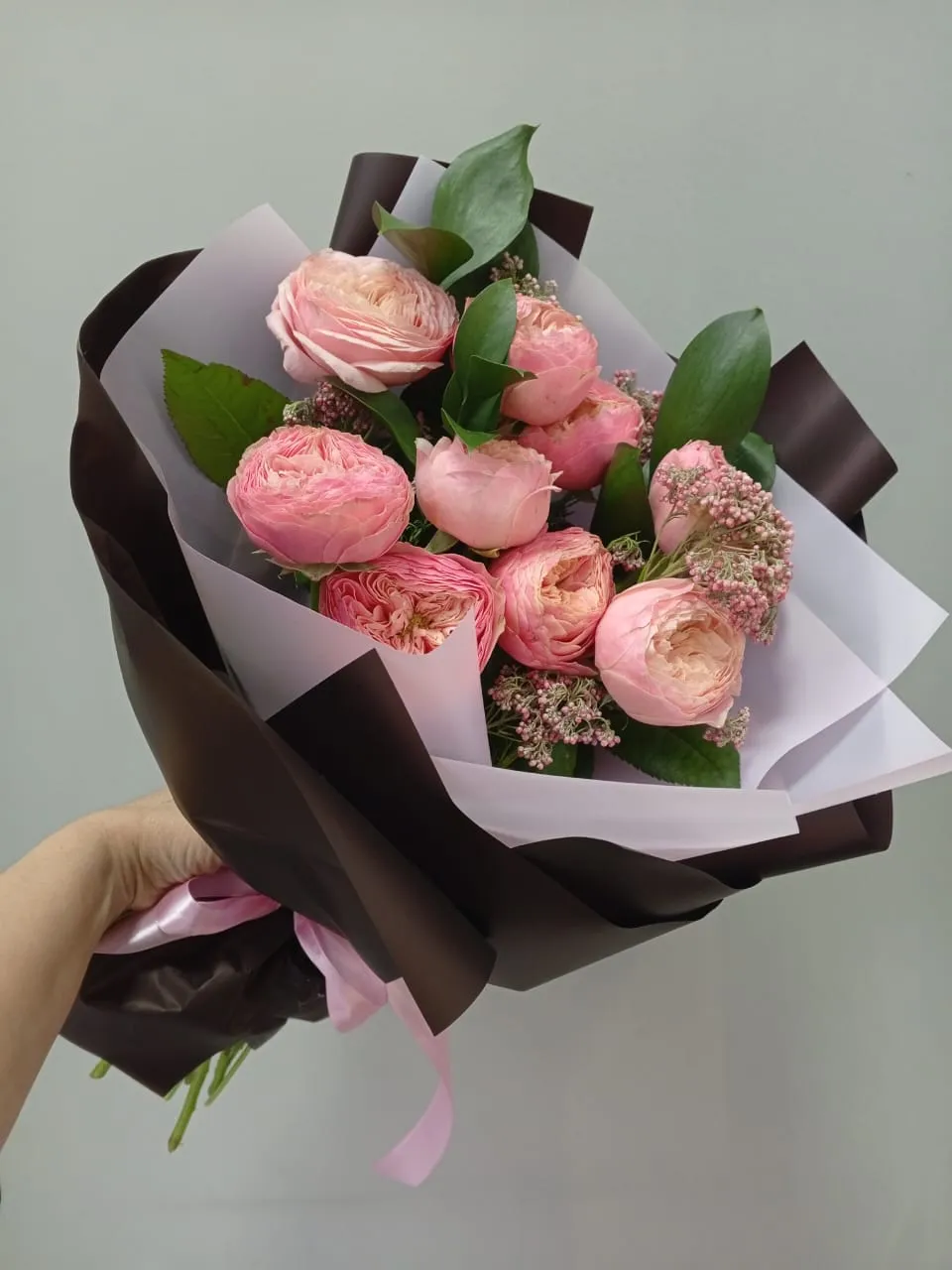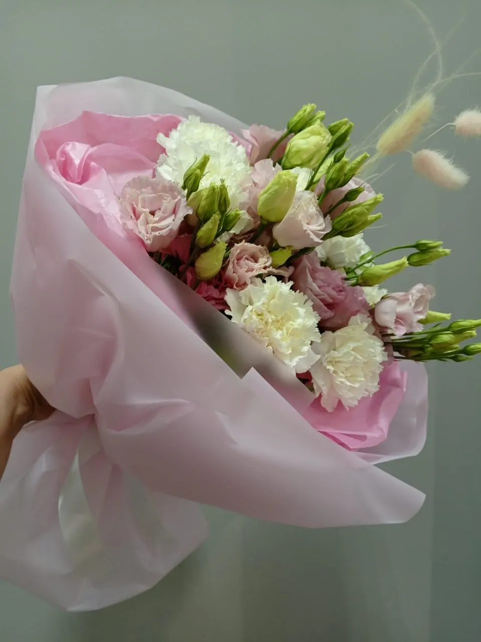Букет из гвоздики и эустоми