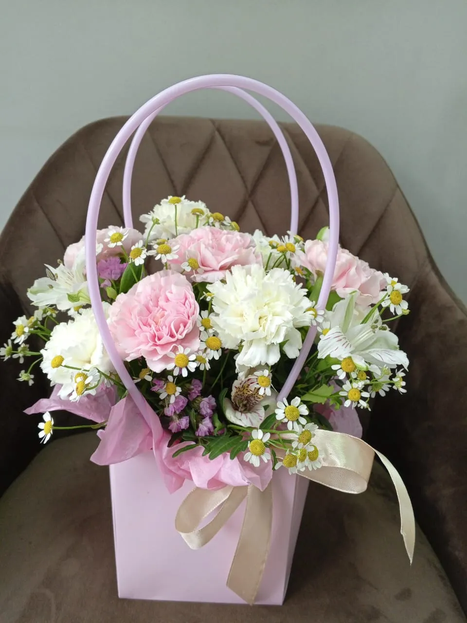 Нежная композиция в корзине с гвоздиками — свежесть и уют в каждом цветке.