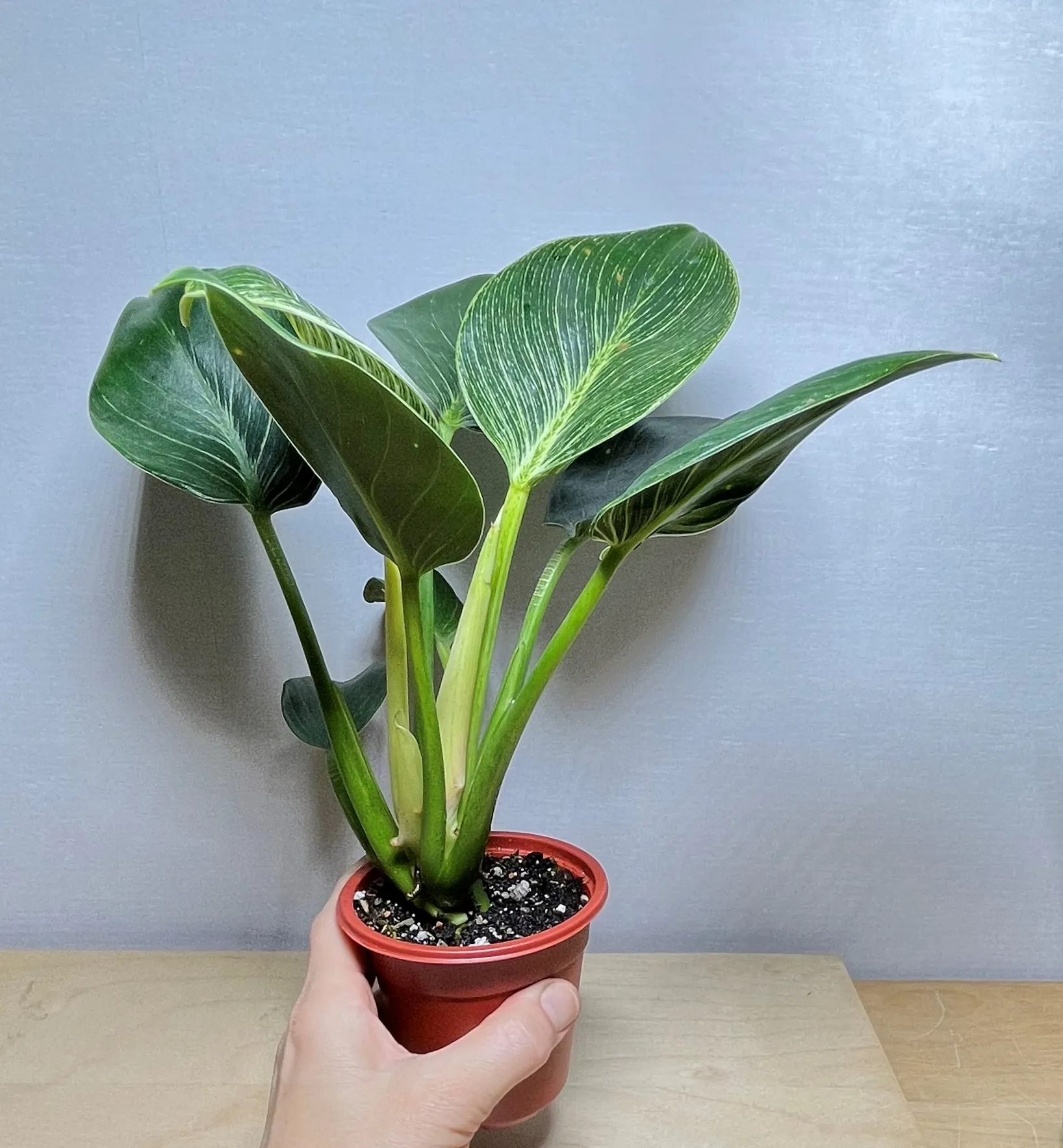Филодендрон Биркин (лат. Philodendron Birkin) - растение из семейства Ароидные, растет в виде куста. Листья темно-зеленые, украшенные пестрыми полосками от кремово-белых до желтых, при хорошем освещении вариегатность листьев становится ярче.